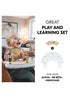 Learn moreAlpha Play Moving Set - Play tray with bead maze for the Alpha+Play and learning set for your highchair. This set of play tray and motor loop allows you to use your Alpha+ or Beta+ even more flexibly, keeping your child entertained while doing chores. By moving the elements around, your child trains logical thinking, recognition of colours and shapes as well as the coordination between visual perception and fine motor skills. Can be combined with a 2nd toy. The play board can be combined with up to two Hauck toy attachments that can be bought and individually switched, allowing your child to train different skills at the same time. Quick, stable and safe to use. The play tray is clicked on the front bar of the wooden highchair in no time and removed just as easily. The wooden toys can be fixed to the play tray with a wooden screw, preventing them to slip. In order for your child to sit safely even while playing, you can use the play together with the highchair harness. Suitable from 12 months onward. Sustainable materials. The easy-to-wipe highchair tray is made of recycled, GRS-certified material, while the toy is made of durable wood that derives from FSC®-certified forests.