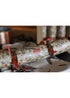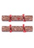 Packaged in a box of 12, each cracker is adorned with a festive red raffia tie