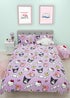 Hello Kitty and Friends are world famous and loved by young and old alike, adorable and instantly recognisable. This officially licensed Hello Kitty fleece bedding set includes a double bed sized duvet cover, with two matching pillowcases. Perfect for the colder winter months this bedding set is fleece lined for extra warmth, and is reversible so you can freshen up the look of your child’s bedroom whenever they like. The front side of the double duvet cover features the Hello Kitty and her friends Cinnamoroll, My Melody, Kuromi, and Kerokero keroppi on a purple background, with a matching side to the pillowcase. The reverse side is a soft powder pink, which continues on to the matching pillocases. The bedding is made from 200gsm coral fleece fabric, so it’s soft and warm in the winter. The bedding features popper closing so it’s easy to remove and wash, and is machine washable and tumble dryer safe at a low temperature. Designed for double beds, the duvet cover measures 200 x 200cm, and the 2 x pillowcases are a standard UK size of 74 x 48cm each