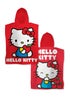 Hello Kitty is loved throughout the world and this officially licensed Hello Kitty towelling poncho is a great gift for young Hello Kitty fans, or young children who just love colour! Perfect to wear on the beach or after swimming, this poncho has a hood, and open sides for comfort. This small sized hooded Hello Kitty towelling poncho is ideal for toddlers and features a bright red background. On the front side there’s a large print of Hello Kitty with her famous red bow sat eating an apple with the ‘Hello Kitty’ logo underneath. The reverse side features Hello Kitty laughing with a number of apples by her side, and the Hello Kitty logo placed above just below the hood. Great for helping to dry your toddler after swimming or bath time, or just keeping warm at the beach or around the house. The poncho is made from 100% cotton, it’s suitable to be washed at 40°c and tumble dryer safe at low temperatures. The Hello Kitty towelling poncho has a wearable size of H57.5cm x W50cm (total size 115 x 50cm) and is designed for children aged approximately 3-6 years.