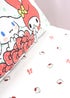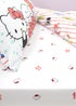 Hello Kitty and Friends are world famous and loved by young and old alike, adorable and instantly recognisable. This officially licensed Hello Kitty fitted sheet is designed for single beds, and has elastic all the way around the hem. The mattress cover fitted sheet features a repeating pattern of cute Hello Kitty faces with her red ribbon, and the Hello Kitty logo in red on a white background, with the pattern running all over the sheet. Designed to fit single beds with a standard depth mattress, the all-around elasticated fabric holds the fitted sheet in place, and makes it super easy to fit or remove to freshen up. Machine washable and tumble dryer safe at low temperatures, the Hello Kitty fitted sheet can be washed and dried quickly. Made from recycled and responsibly sourced polycotton, the sheet is breathable, warm, and kind to skin, while being considerate to the environment. Suitable for single beds, the sheet fits mattresses measuring 90 x 200 x 26cm, so it’s perfect for children and teenagers that love Hello Kitty.