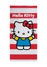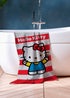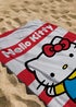 Hello Kitty is world famous and loved by young and old alike, adorable and instantly recognisable with her iconic red ribbon and blue dress. This Hello Kitty towel features a large, colourful print of Hello Kitty in the centre in yellow and blue, with the Hello Kitty logo printed above on a bright red and white horizontal stripe background. This towel makes for a great gift for any young Hello Kitty fan, and it can be rolled or folded up compact enough to go in a sports bag to use at swimming lessons, take to school, or to fit in a suitcase. The towel measures 70 x 140cm, making it perfect as a beach towel for holidays abroad or at home. It’s great as a towel for the pool, either as your child’s regular swimming towel or when travelling. The towel is large and durable enough to be used as an everyday bath towel when they’re showering at home. Made from 100% cotton, this Hello Kitty towel is soft, comfortable and kind to skin, it’s machine washable and tumble dryer safe, and made to withstand repeated use.