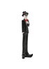 Dressed in a black suit, red bow tie and matching top hat, this tall, elegant figure features a detailed sugar skull face inspired by traditional calavera art.