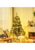 Your christmas tree set up - ready quickly from out the box. This HOMCOM 5ft artificial piece comes with lights, baubles, decorations and a 'Merry Christmas' banner - a sparkling design, with room to add on own decorations if you want. Made from tough plastic, this is an artificial design: strong and sturdy and suitable for yearly use. Formed of three separate pieces to easily fit together. Also comes with a steel base, so it stands steady.