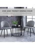 Transform your home and dining space instantly with these two dining chairs, from HOMCOM. Comfortable as they are beautiful, they combine a relaxed, arm-free shape, with padded seats and velvet-feel upholstery. The colour is bright and bold, for a striking addition to your home. The seats are both fitted on a steel frame, giving plenty support . Sit down and take a seat in soft style, this season and beyond. Colour: Grey Material: Polyester, Sponge, Steel Weight Capacity: 120kg Overall Dimension: 49W x 50D x 77H cm Seat Dimension: 46.5W x 42D cm Seat Height from Ground: 46.5cm Seat Cushion Thickness: 4.5cm Item Label: 835-139V70GY