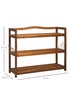 This wooden shoe rack by HOMCOM is a great solution for organising and storing your footwear. Made from Acacia wood, it's really durable and sturdy, coated with warn-tone varnish for an important layer of protection. Three tiers hold up to 12 pairs of shoespumps, trainers, smart work style pieces and low-rise boots, with side hooks to hold two moregreat for use in the family home. It's complete with a side and back bar so shoes on the top don't fall off. Colour: Teak Material: Acacia Wood Overall Dimension: 74L x 26W x 62H cm Weight Capacity: 80 kg(each shelf) Item Label: 833-439V01