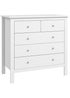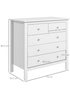 Fresh, spacious and simple, this HOMCOM chest of drawers is the perfect addition to any living space. Made from a durable and hardwearing MDF and particle board blend, this drawer unit is made to be used everyday, with a smooth painted surface for light protection. There's three large drawers and two smaller top drawersplenty of space for all your clothes. Finished with feet to elevate and help prevent wear and tear. Overall dimension: 79W x 39.5D x 80.5H cm Material: E1 class MDF, Particle Board Colour: White Small drawer inner size: 28.5W x31.5D x 9.5H cm Large drawer inner size: 63W x 31.5D x 9.5H cm Weight capacity: (drawer) 10kg, (whole) 70kg Item Label: 831-256V00WT