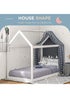 Transform your bedtime into a delightful adventure with the HOMCOM Single Bed Frame. This charming house-shaped wooden bed frame adds a sprinkle of fun, offering the canvas to drape twinkling lights or whimsical curtains. Its solid wood construction ensures a smooth, burr-free experience to keep you or little ones secure all night long.