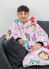 Snuggle up in irresistible cuteness and comfort with the Squishmallows Hugzee! This Hugzee combines the warmth of a hoodie with the cosiness of a blanket. Featuring adorable Squishmallows characters in a repeating pattern, this Hugzee brings the lovable and huggable Squishmallows world to life. From their vibrant colors to their charming expressions, it's a visual delight that instantly brings joy and smiles. Crafted with ultra-soft fabric, this Hugzee feels like a warm hug from your favorite Squishmallows friends. The oversized design ensures maximum comfort, allowing you to snuggle up and unwind in style. The deep pockets keep your hands toasty, and the generously sized hood adds an extra layer of warmth and cosiness. Not only is the Squishmallows Hugzee perfect for lounging around the house, but it's also great for outdoor adventures. Take it on camping trips, wear it to festivals, or simply wrap yourself up in its comforting embrace during chilly evenings. Indulge in the enchanting world of Squishmallows and make every day feel like a cuddly adventure with the Squishmallows Hugzee. Whether you're binge-watching your favorite shows, enjoying a book, or simply embracing the joy of play, this Hugzee is your gateway to ultimate comfort and cuteness. Medium should fit ages 7-12years and Large should fit ages 13+