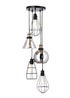 The INLIGHT Callisto Glass & Caged Cluster Ceiling 5 Light fixture combines industrial charm with modern elegance, making it a standout addition to any contemporary space. The fixture's design features a striking blend of glass and metal elements, with a sophisticated black finish accented by bronze detailing. Height 50-102cm x Width 33cm, minimum drop 50cm. Requires: 5 x E27 bulbs, not included.