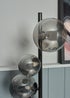 Illuminate your space with the striking INLIGHT ORBIE 5-Light Floor Lamp, featuring a sleek black chrome finish and elegant glass shades. This modern floor lamp is designed to make a statement, offering both functional lighting and sophisticated style. The five adjustable glass shades provide a warm, ambient glow, perfect for living rooms, reading nooks, or any space in need of a touch of luxury. Requires 5 x G9 bulbs, not included. Height 150cm x Width 33cm.
