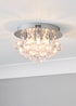 This chrome ceiling light by Inlight is for those seeking glamorous lighting with a flush design. Three lights drop from the ceiling plate, with tiers of clear acrylic droplet beads falling effortlessly to create a stunning light effect. Dimensions: H16cm x 25cm. Weight: 1.6kg. Requires 3 x 3W G9 LED Capsule Bulbs (Not Included). Electrician Needed