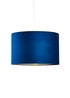 The INLIGHT Velvet Drum Easyfit Shade in Blue is a chic lighting accessory crafted to elevate your home decor. Its luxurious blue velvet fabric and sleek drum shape exude elegance and modernity. The Easyfit feature ensures hassle-free installation, eliminating the need for electrical work. Requires 1 x 10W LED ES GLS Bulb (not included). Height 22cm x Width 35cm.