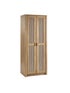 A beautifully sleek design with a bohemian feel, the Sydney 2 Door Wardrobe offers exquisitely curved edging accompanied by a raised lip around the edge providing a practical addition, stunningly combined with a rattan-effect sticker front. Finished with a natural oak effect featuring a double door design, providing plenty of hanging space for your clothes and belongings. Creating the perfect airy, warm feel within your home.