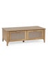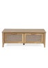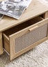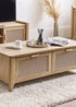 Showcasing a beautifully sleek design with a bohemian feel, the Sydney 2 Drawer Coffee Table offers exquisitely curved edging accompanied by a raised lip around the edge providing a practical addition, stunningly combined with a rattan-effect sticker front. Finished with a natural oak effect featuring two pull-out drawers to store away items discretely. All around creating the perfect airy, warm feel within your home.
