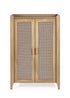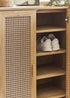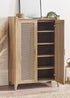 Showcasing a beautifully sleek design with a bohemian feel, the Sydney Shoe Cupboard offers exquisitely curved edging accompanied by a raised lip around the edge providing a practical addition, stunningly combined with a rattan-effect sticker front. Finished with a natural oak effect featuring five shelves allowing you to hide your shoes away discretely when guests are over. All around creating the perfect airy, warm feel within your home.