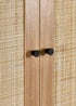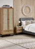Fusing modern construction with retro design elements, the Padstow collection will exquisitely complement any styled home. The natural rattan fronts and industrial-style base collaborate perfectly to leave a warm yet chic aesthetic in your home. This range includes a bedside, 3 drawer chest, 6 drawer chest, wardrobe, coffee table, TV unit, sideboard, and tall bookcase. Also available in a black finish.