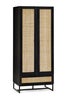 Fusing modern construction with retro design elements, the Padstow collection will exquisitely complement any styled home. The natural rattan fronts and industrial-style base collaborate perfectly to leave a warm yet chic aesthetic in your home. This range includes a bedside, 3 drawer chest, 6 drawer chest, wardrobe, coffee table, TV unit, sideboard, and tall bookcase. Also available in an oak finish.