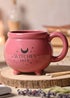 Finished in a rich pink glaze, this ceramic mug features a bold black moon design and the phrase “Witches Brew” surrounded by magical stars.