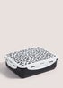 Take a walk on the wild side during your lunchtimes with this stylish box. Featuring a black leopard print lid, it comes with internal compartments for easy separating, too. Dimensions: 22cm x 17cm x 6cm.