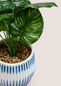 Leafy Plant In Blue Ribbed Pot (28cm x 15cm x 15cm)