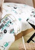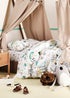 Pack your tent, sleeping bag, bike and marshmallows – we’re going camping! A campsite scene, Down By The River includes beautiful Australian wildlife, all hand-drawn and printed on a crisp white cotton percale ground. Trimmed with fluorescent-yellow cord piping, the set reverses to a black and white print of fishing rods, cricket bats, flash lights and more go-to essentials.