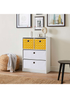 Get organised and maximise your storage space with our versatile cube storage unit. This stylish bookcase features multiple storage compartments, including two cube slots on top for smaller drawers and two larger spaces below for longer drawers, making it perfect for storing everything from toys and games to books and clothing. With its modern print and sleek drawers, this cube storage unit adds a touch of style to any room. Shop now and enjoy a clutter-free home!