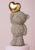 The Love Is Sweet Grey Bear with Heart Ornament by Celebrations. This grey ornament features a rose-textured bear holding a gold heart, creating a charming decorative piece that adds a sweet finishing touch to shelves or sideboards.
