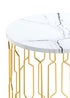 Learn moreFeaturing a fresh, crisp round white marble effect top and an eclectic gold base in a geometric pattern, the Grace table would be a great asset to your living area. Practical as well as chic, this will work in a traditional home but then also a more of a contemporary interior too! (420x390x390)