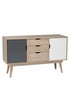 Learn moreCompleting an affordable, retro range of furniture, the Scandi 3 Drawer Oak Sideboard features angled legs and a large table surface inlaid with 2 cupboards and 3 drawer combination for storage. Finished in oak, with accent white and grey doors, this design is ideal for those looking for unique style, practical storage options and something a bit more adventurous from living area. (770x450x1250)