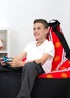Perfect as a gift for any gamers or Red Devils in your life, this bean chair is officially licensed by Manchester United. Offering more support than a standard bean bag, and more comfort that a standard computer chair, this Man United bean chair combines the comfort of a bean bag with the back support of a traditional gamer chair. The bean chair is set in black and features a stripe pattern in United’s team colours of red, white and black, with the Man United club badge running from the headrest to the seat, with a band of red, white and black with the MUFC crest also running down the back. The bean chair offers enough comfort and support for even long gaming sessions, when streaming, watching the match, or even binging films. It has a strap for storing headphones and headsets, plus a carry handle so it can be moved around, from bedrooms to playrooms to living rooms. The bean chair is made from stain, crease and water resistant material, and is easy to wipe clean, it’s suitable for use outdoors in dry weather, it’s fire retardant and meets British safety standards, and is filled with beans here in the UK. The bean chair is large enough to be comfy and supportive measuring 90 x 95 x 85cm (HxWxD)