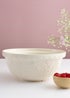 The Mason Cash In the Meadow collection is intricately embossed with delicate florals and foliage, with a beautiful colour palette. A perfect addition to any kitchen. Made from earthenware, the mixing bowl is light enough to hold in one arm while mixing, but sturdy enough when using on the counter top, making it the perfect bowl for home or professional bakers. The distinct patterned exterior and rim is designed to help bakers grip and tip the bowl, while the wide shallow shape allows for kneading within the bowl. The Size 12 Mixing bowl measures 29cm x 14cm, with a capacity of 4 litres, making this a perfect size for dough, pastry, cake or cookie mixes. The bowl is dishwasher and freezer safe. The mixing bowls have been a classic for Mason Cash for centuries, with a high-gloss glaze providing a chip resistant finish. Mason Cash offer mixing bowls in a wide variety of sizes and colours, providing options for every baker and to suit all kitchens. Mason Cash was established in the heart of the English ceramic industry back in 1800 and has become world renowned for its innovative, classic kitchenware today.