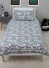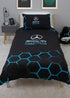 Live out your dreams of being a champion Formula 1 racing driver with this officially licensed Mercedes F1 bedding set. The set includes a single duvet cover and pillowcase, and is reversible so you can freshen up the look of your child’s room. The front side of the reversible duvet cover features a large print of the Mercedes logo with ‘AMG Petronas Formula 1 Team’ branding, set on the team colours of black with a teal honeycomb pattern, which is matched on one side of the pillowcase. The reverse side of the duvet has F1 race locations in the Mercedes colour scheme of black and teal, set on a white background, that runs on to the pillowcase. The bedding is made from recycled materials and printed to a high standard. Made from a cotton polyester blend, the bedding features popper closing so it’s easy to remove and wash. The quilt cover and pillowcase are machine washable, and tumble dryer safe at a low temperature. Designed for single beds, the duvet cover measures 135 x 200cm, and the pillowcase is a standard UK size of 74 x 48cm.