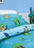 Capturing the imagination and sparking the creativity of gamers for a generation, Minecraft is loved by fans of all ages. This officially licensed Minecraft bedding set includes a single bed sized duvet cover and matching pillowcase. The bedding set is reversible so you can easily freshen up the look of your child’s room. The front side of the bedding features a repeating pattern of Alex and Steve with Creepers and Minecraft blocks on a blue background, with the pattern matched on the pillowcase. The reverse side of the duvet cover features Alex, Steve, Creepers and Zombies on a light blue background with pixels and blocks. The pattern continues on to the matching side of the pillowcase. The bedding is made from recycled and responsibly sourced materials, and printed to a high standard. Made from soft brushed microfibre, the bedding features popper closing so it’s easy to remove and wash. The single duvet cover and pillowcase are machine washable, and tumble dryer safe at a low temperature. Designed for single beds, the Minecraft duvet cover measures 135 x 200cm, and the pillowcase is a standard UK size of 74 x 48cm