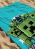 This summer the wild world of Minecraft comes to life with the fun, colourful, live action Minecraft movie starring Jack Black as Steve, Jason Momoa as Garett Garrison, and Emma Myers as Emily. This officially licensed Minecraft towel is great for everyday use, but ideal to take on holiday, and perfect as a gift! Featuring a large print of a mob of Creepers with the Minecraft gang in a mine cart, with the Minecraft Movie logo below and set on a vibrant blue background. This towel makes for a great gift for any Minecraft fan, and it can be rolled or folded up compact enough to go in a sports bag to use at swimming lessons, take to school, or to fit in a suitcase. The towel measures 70 x 140cm, making it perfect as a beach towel for holidays abroad or at home. It’s great as a towel for the pool, either as your child’s regular swimming towel or when travelling. The towel is large and durable enough to be used as an everyday bath towel when they’re showering at home. Made from 100% cotton, this Minecraft Movie towel is soft, comfortable and kind to skin, it’s machine washable and tumble dryer safe, and made to withstand repeated use.