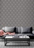 Muriva Indra wallpaper is an abstract diamond, geometric design printed in rich metallic ink. The background is a vertical silk texture enhanced with subtle glitter. Dimemsions L 10.05m x W 53xm
