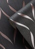 Muriva Indra Wave wallpaper is beautiful ogee geometric design printed in rich metallic ink. The background is a vertical silk texture enhanced with subtle glitter. Dimensions L 10.05m x W 53cm