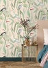 Learn moreFabulous hand drawn shorebirds, wading through beautiful water plants. Soft colours on a bold background creates an effective design on this wallpaper.