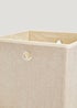 Learn moreBring an efficient addition to your living space with this handy storage box. With the ability to be folded so it can easily be packed away, this box is made with stylish natural fabric and finished with an eyelet for ease of pulling it in and out. Perfect for tidying away your clutter. Dimensions: 27cm x 27cm x 27cm.