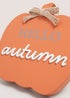 Learn moreAdd a touch of autumn to your home with our delightful orange pumpkin standing plaque! This charming plaque will bring a warm and rustic feel to any room with a HELLO AUTUMN slogan on the front.