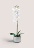 Learn moreAdd a touch of elegance to your home with our stunning Silver Pot Orchid. This beautiful artificial plant features intricately detailed flowers and foliage in a silver-toned pot that exudes modern sophistication.