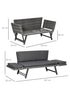 Make your outdoor times even better than before with this convertible sofa from Outsunny. A 2-in-1 design, it features side armrests which can be left up or down, giving you greater relaxing options. For the underlying frame, reinforced steel is used to ensure ensuring strength and stability. PE rattan, meanwhile, is handwoven around for a look which blends in with your garden effortlessly, whilst protecting the bed from light weather damage. It's finished with thick padded cushions for comfortable resting - a great way to laze a sunny afternoon away. Dimensions: Bed L167cm x W63cm x H66cm. Sofa L129cm x W63cm x H67cm. Duo design. Metal frame wrapped in PE wicker. Thick cushions. Four legs to ensure balance. Easy to clean - simple wipe with mild sanitiser and a damp cloth. Maximum Load: 220kg. Assembly required.