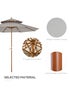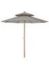 Live the elegant way this season and beyond - choose Outsunny sunshades for your garden. Using poplar wood for the main structure, the warm brown colour works in hand with the grey top, creating a beautiful look which is nicer on the eye than standard metal. The wood is tough and durable so it can be used all day long, with eight bamboo ribs connecting the canopy to the pole for extra strength. Crafted into a two-tier design which lets air in and out, it helps to reduce any wind-build up underneath. Dimensions: 2.7m x 2.7m x 2.6m. Strong and resilient bamboo ribs Brown and grey Brass accents. Easy to open and close. Two-tier canopy. Base not included. Assembly required. Note: Umbrella stand not included - please do not leave the umbrella open in unfavourable weather conditions.
