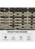 Learn moreTurn your outdoor space into a relaxing haven with this five-piece furniture set by Outsunny. It includes a sofa, two corner sofas, a stool sofa and a tea table, helping you create an inviting seating area you can use for years to come. Each piece features a rust-resistant, galvanized metal frame with durable, weather-resistant PE rattan wicker and the seats come with thick cushions for maximum comfort and relaxation. The cushion covers are removable thanks to their handy zips, and can be washed for easy care. Dimensions: Middle sofa: L 75cm x W 67cm x H64cm. Corner sofas: L 75cm x W 75cm x H 64cm. Stool sofa: L 75cm x W 75cm x H33cm. Tea table: L 90cm x W 50cm x H 33cm. Single sofa weight capacity: 160kg. Stool sofa weight capacity: 160kg. Tea table weight capacity: 70kg. Features: Flat pack. Assembly required. Zippered cushions filled with 8cm thick cotton Washable cushion cover made from water-resistant polyester cloth for easy cleaning. Levelling feet adjust to help raise or lower the set on uneven ground.