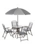 Outsunny 6 Piece Patio Dining Set with Garden Umbrella 4 Folding Chairs Grey