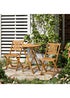 Learn moreBistro chairs with a little difference. This three-piece set is a great compact set, formed from wood for natural beauty. Set comes with two chairs and a matching table - room to enjoy your outdoor space with company. The wood structure makes each piece strong, with a varnish coating for protection. Leave the wood natural or how about customising to your own colour for a more personal effect? And when done, you can fold each piece flat - a real space saver. Colour: Teak