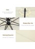 Learn moreCreate a stylish shaded space in your garden with this hanging umbrella by Outsunny. Combining traditional workmanship with a modern aesthetic, this cream banana parasol will perfectly match any garden, courtyard or outdoor swimming pool, and makes a practical addition to your outdoor dining furniture. Also available in black and green. Please note: Cross base is included but weights are required (sold separately). Dimensions: Umbrella diameter: 3m. Umbrella height: 2.6m. Cross base frame: L 100cm x W 100cm x H 4.6cm. Metal stand pole: 4.8cm diameter. Features: Stylish hanging design keeps you shaded Crank winding mechanism to open and close. High quality 180g/m2 water resistant polyester fabrics. Top vents Made from black powder coated iron for maximum protection. 8 umbrella ribs support the canopy.
