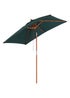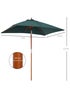 Keep yourself shaded from the sunshine with this timeless parasol from Outsunny. In a beautiful caramel brown stained finish solid wood forms the central pole to ensure a tough and durable structure. On the top a green large square canopy sits. Made from 180g polyester to provide UV protection the parasol's angle can be adjusted and it features eight bamboo ribs for extra support between the frame and canopy. It's finished with a pull rope for easy opening and closing. The perfect blend of beauty and function. Dimensions: L 200cm x W 150cm x H 230cm. Features: Attractive and stylish parasol umbrella to keep you protected from the sun. Large canopy provides lots of shading area. Solid wood central pole for a tough structure which keeps upright all day long. Six bamboo connectors from pole to canopy for extra support. Tilt mechanism to position the canopy to a suitable angle. Pull rope for easy and smooth opening and closing. Not suitable for heavy weather. Assembly required. Specifications: Brand Name: Outsunny Colour: Green. Material: Wood, Bamboo, Polyester. Net Weight: 4.5kg. Overall Dimension: 200L x 150W x 230Hcm. Umbrella Pole Diameter: 38mm. Flat Pack: YES. Custom Label: 84D-017GN.