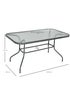 Learn moreThe perfect centrepiece for your outdoor setup, this sleek and stylish garden table by Outsunny will help you make the most of al fresco dining. With a versatile appearance that pairs well with several other styles of outdoor furniture, the smooth, curved frame of the table is fashioned from sturdy metal, complete with four evenly spaced legs for balance, and topped with smooth and strong Aquatex glass. A handy parasol hole in the middle of the table completes the design. Umbrella Hole Diameter: 3.8cm. Assembly Required. Please click here for assembly guide.