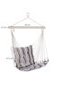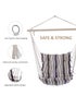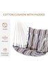 Learn moreCreate a comfy spot for lazy days with this cushioned swing chair by Outsunny. Featuring firm cotton ropes and a solid hardwood frame, this hanging chair is perfect for use in the garden or for camping, beach and mountain holidays. It boasts a thick padded seat and back support, together with a classic brown, off white and purple stripe design that means its as stylish as it is practical. Dimensions: Seat size: W 57cm x D 47.5cm. Backrest height: 47.5cm. Hardwood bar size: Diameter 3.3.cm x Length 95cm. Net weight:2.4kg. Weight capacity: 105kg.